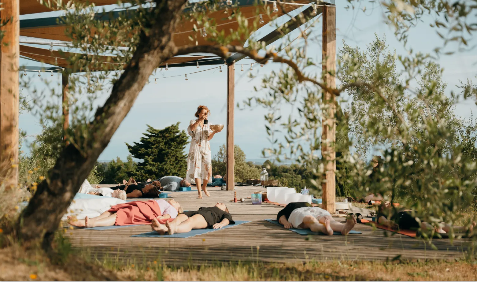 Conversations take place under the Tuscan sky, around shared tables, walking paths, and open-air settings designed for presence rather than performance. There are no slides or screens.